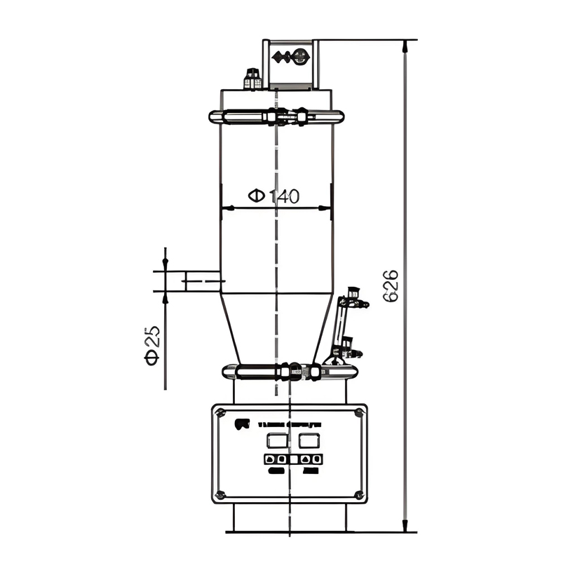 When compressed air is supplied to the vacuum generator, the vacuum generator creates negative pressure to form a vacuum airflow. Materials are sucked into the suction nozzle, forming a solid-gas flow, which then reaches the hopper of the feeder through the suction pipe. The filter completely separates the materials from the air; when the hopper is full of materials, the controller automatically cuts off the air supply, the vacuum generator stops working, and at the same time, the hopper door opens automatically, allowing the materials to fall into the hopper of the equipment. Meanwhile, compressed air automatically cleans the filter through the pulse backblow valve. When the set time is reached or the level sensor sends a feeding signal, the feeder is automatically started.